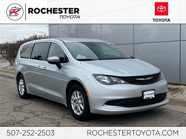 The 2023 Chrysler Voyager LX FWD is a versatile and family-focused minivan that delivers comfort, technology, and everyday practicality, and this Recent Arrival with a New Price offers exceptional value backed by a CARFAX One-Owner, Clean CARFAX history. Powered for smooth front-wheel-drive performance with an efficient 19/28 City/Highway MPG, this Voyager LX features a 3rd row split-bench seat, power sliding doors, and a power liftgate for easy access and flexible cargo space. Stay connected through the Uconnect 5 system with a 7 touchscreen display, Apple CarPlay, Android Auto, Bluetooth® hands-free capability, SiriusXM, USB Host Flip, and steering wheel-mounted audio controls. Enjoy premium comfort with heated front seats, a heated steering wheel, cloth bucket seats, front dual-zone automatic climate control, rear air conditioning, and multizone climate control. Safety and confidence come standard with a Collision Warning System, ParkView Rear Back-Up Camera, Electronic Stability Control, traction control, ABS brakes, 4-wheel disc brakes, heated exterior mirrors, fully automatic headlights, and low tire pressure monitoring. Additional highlights include 17 x 7 aluminum wheels, alloy wheels, four-wheel independent suspension, Quick Order Package 27E, keyless access with push-button start, power driver seat, power windows, cruise control, and remote keyless entry. Finished in Silver Mist Clearcoat, this 2023 Chrysler Voyager LX FWD is the ideal blend of space, safety, and modern technology for today's busy lifestyle.