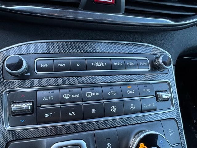 Bold styling, advanced safety technology, and everyday versatility come together in this 2023 Hyundai Santa Fe SEL AWD, finished in sleek Hampton Gray with a Clean CARFAX. Designed to handle changing road conditions with confidence, this Santa Fe features All-Wheel Drive along with driver-assist technologies like Collision Warning System, Blind-Spot Monitors, Lane Keeping Assist, and a Backup Camera for added awareness behind the wheel. Inside, the spacious cabin offers impressive comfort with heated front seats, dual-zone automatic climate control, stain-resistant cloth seating, and a power driver seat, while the power liftgate and push-button start with remote keyless entry add everyday convenience. The modern touchscreen infotainment system with Navigation, Apple CarPlay, Android Auto, Bluetooth® hands-free connectivity, SiriusXM capability, and steering wheel mounted controls keeps you connected wherever the road leads. Complemented by 18-inch alloy wheels, automatic high-beam headlights, heated power mirrors with integrated turn signals, and advanced stability and traction control, this 2023 Hyundai Santa Fe SEL AWD delivers the comfort, technology, and capability drivers look for in a well-equipped midsize SUV.