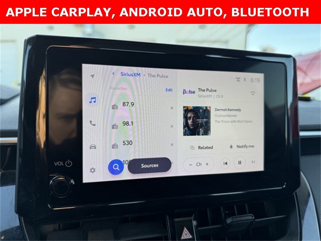 Certified. Collision Warning System, Adaptive Cruise Control, Lane Keeping Assist, Touchscreen Controls, Backup Camera, Apple CarPlay, Android Auto, Bluetooth® Hands Free, Portable Audio Connection, Sirius Radio, Cruise Control, Safety Connect, 4-Wheel Disc Brakes, 6 Speakers, ABS brakes, Air Conditioning, AM/FM radio: SiriusXM, Auto High-beam Headlights, Automatic temperature control, Brake assist, Electronic Stability Control, Exterior Parking Camera Rear, Fully automatic headlights, Illuminated entry, Low tire pressure warning, Power door mirrors, Power steering, Power windows, Premium Fabric Seat Trim, Radio: 8 Toyota Audio Multimedia, Rear window defroster, Remote keyless entry, Speed control, Steering wheel mounted audio controls, Traction control, Variably intermittent wipers, Wheels: 16 Wide Vent Steel. Clean CARFAX.