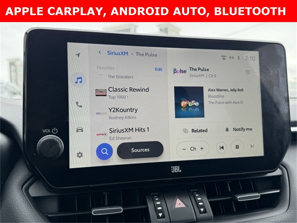Certified and well equipped, this 2023 Toyota RAV4 Hybrid XLE Premium AWD blends impressive efficiency with refined comfort and advanced technology in a versatile all-wheel-drive SUV. It delivers an outstanding 41/38 city/highway MPG and features leather-trimmed SofTex seating, heated front seats, a heated leather steering wheel, driver seat memory, dual-zone automatic climate control, and a power liftgate. The touchscreen infotainment system includes Apple CarPlay, Android Auto, Bluetooth® hands-free connectivity, SiriusXM, Qi-compatible wireless smartphone charging, Smart Key with push-button start, and Safety Connect. Confidence comes standard with Collision Warning System, Adaptive Cruise Control, Lane Keeping Assist, Blind Spot Monitor, Lane Departure Warning, Intelligent Clearance Sonar with Front & Rear Parking Assist and Automated Braking, backup camera, and auto high-beam headlights. Enhanced by the XLE Premium Package, Weather Package, and Advanced Technology Package, plus 18-inch sport alloy wheels and a tilt/slide moonroof, this Midnight Black Metallic RAV4 Hybrid XLE Premium AWD with a Clean CARFAX is a smart choice for drivers seeking efficiency, comfort, and capability.