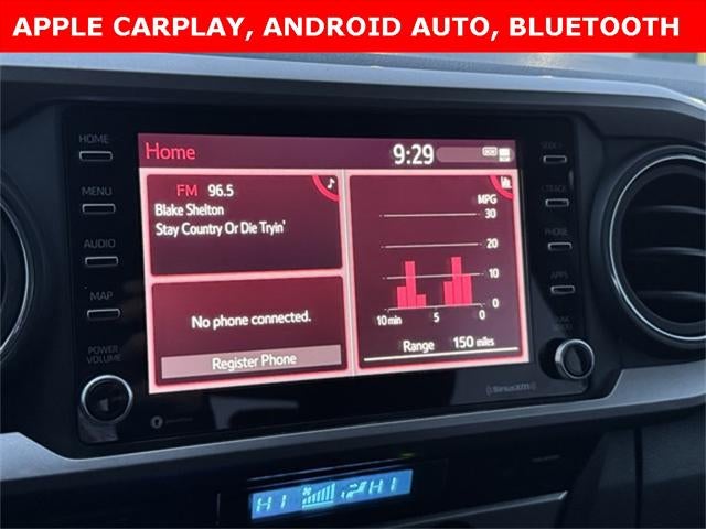 Take on every road with confidence in this Certified 2023 Toyota Tacoma SR5 V6 4WD, a rugged midsize truck that blends proven Toyota durability with modern tech and safety. Powered by a strong V6 and equipped with 4WD, this Tacoma is ready for work, weekend adventures, and everything in between. Enjoy advanced driver-assist features like a Collision Warning System, Adaptive Cruise Control, and Lane Departure Warning, plus everyday convenience from a responsive touchscreen, backup camera, Apple CarPlay, Android Auto, and Bluetooth® hands-free connectivity. The cabin is comfortable and functional with multizone climate control, a power driver seat, power windows/locks, and a power sliding rear window with privacy glass. Entertainment is handled by an AM/FM SiriusXM system with portable audio connection and steering wheel-mounted audio controls, while bold styling is finished off with 16-inch dark gray alloy wheels, fog lights, and daytime running lamps. Backed by a Clean CARFAX, this Tacoma SR5 is the smart choice for drivers searching for a dependable certified used Toyota Tacoma 4WD.