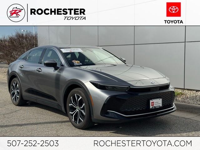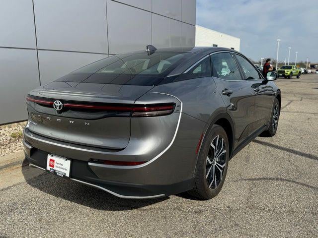 Experience refined performance and advanced technology in this Certified 2024 Toyota Crown XLE AWD, finished in striking Heavy Metal and backed by a Clean CARFAX. This all-wheel-drive sedan delivers impressive efficiency at 42/41 City/Highway MPG while offering a premium driving experience with the XLE Package, heated 8-way adjustable front seats, and fabric with SofTex seat trim. Stay confidently connected with a touchscreen infotainment system featuring Apple CarPlay, Android Auto, Bluetooth® hands-free capability, SiriusXM radio, and a premium audio system with Dynamic Navigation (3-year trial), while Safety Connect (1-year trial) adds peace of mind. Advanced safety features including Collision Warning System, Adaptive Cruise Control, Blind-Spot Monitors, Lane Keeping Assist, Auto High-Beam Headlights, and a backup camera enhance every drive. Enjoy added comfort and convenience with dual-zone automatic climate control, HomeLink garage door transmitter, heated mirrors, power driver and passenger seats, and remote keyless entry. Completing the look are sleek 19-inch multi-spoke machined two-tone alloy wheels, making this 2024 Toyota Crown XLE AWD the perfect blend of style, efficiency, and modern capability.