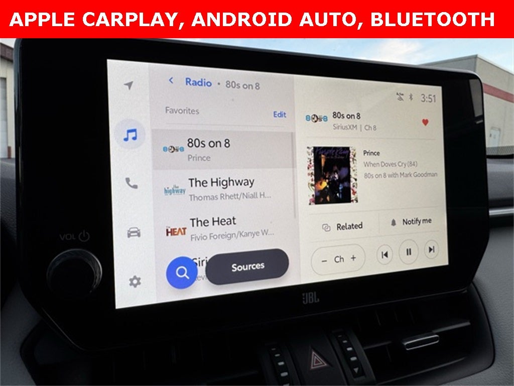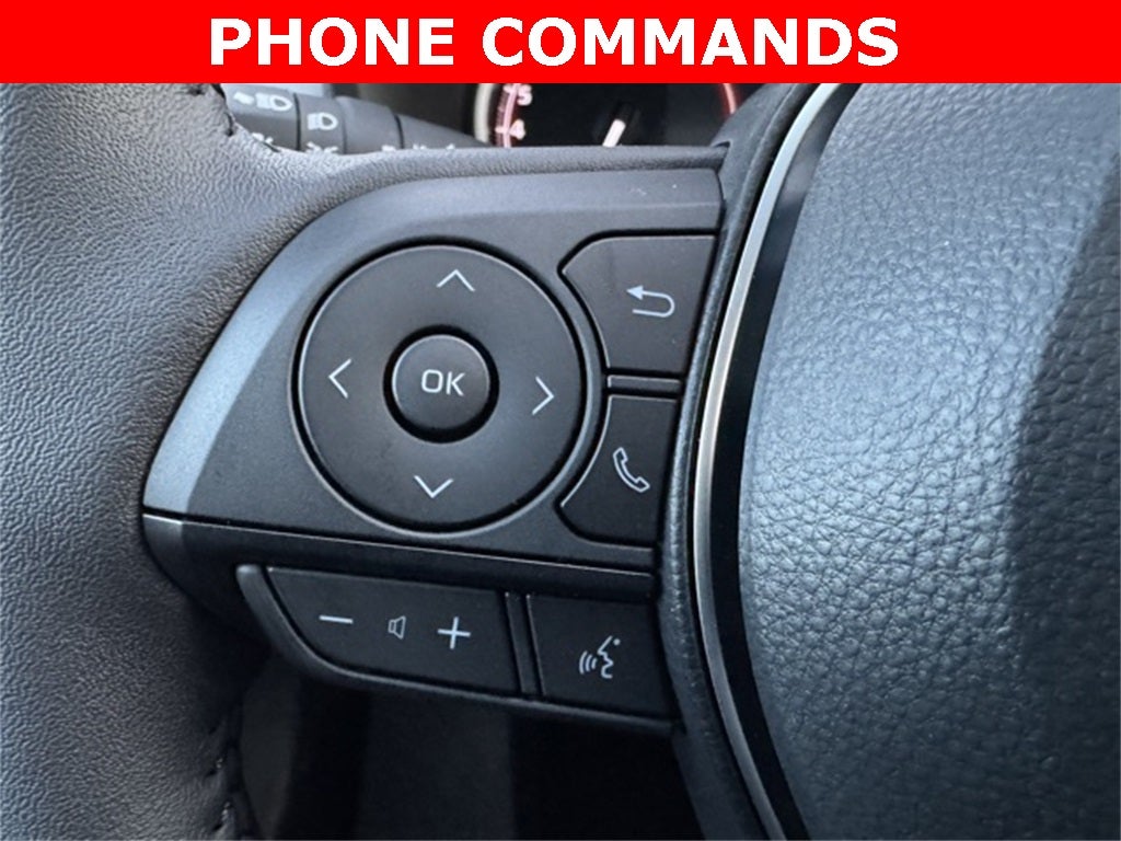 Experience refined versatility and confident all-weather capability in this Certified 2025 Toyota RAV4 XLE Premium AWD, a stylish and well-equipped compact SUV that blends upscale comfort, advanced technology, and impressive efficiency. Powered by an intelligent All-Wheel Drive system, this RAV4 XLE Premium features a comprehensive Collision Warning System, Adaptive Cruise Control, Lane Keeping Assist, Blind-Spot safety technology, and a rearview backup camera for added peace of mind. Inside, enjoy premium SofTex-trimmed leather seats with front seat heating, a heated 3-spoke leather steering wheel, drivers seat with memory function, dual-zone automatic climate control, and the desirable Weather Package. Stay seamlessly connected through touchscreen controls with Apple CarPlay, Android Auto, Bluetooth® hands-free calling, SiriusXM radio, and portable audio integration. Additional highlights include a power moonroof, power liftgate, Smart Key with remote keyless entry, Safety Connect, automatic high-beam headlights, 19-inch 5-spoke silver alloy wheels, and the XLE Premium Package. Finished in striking Midnight Black Metallic and backed by a Clean CARFAX, this 2025 Toyota RAV4 XLE Premium AWD delivers comfort, confidence, and everyday practicality in one outstanding SUV.